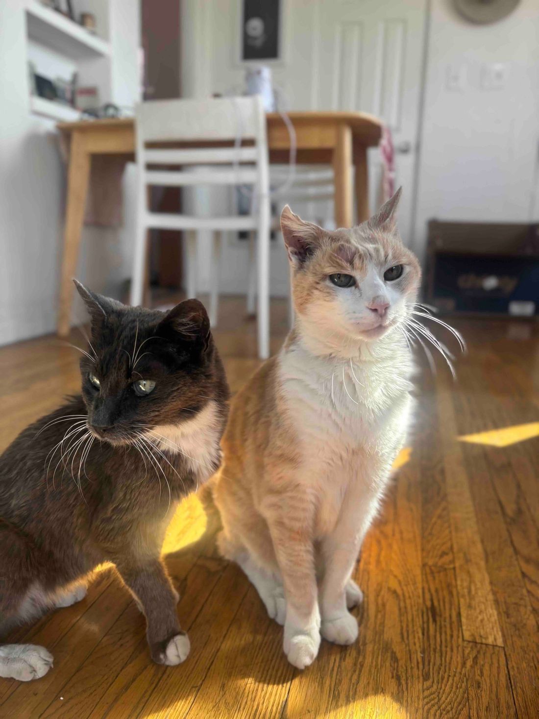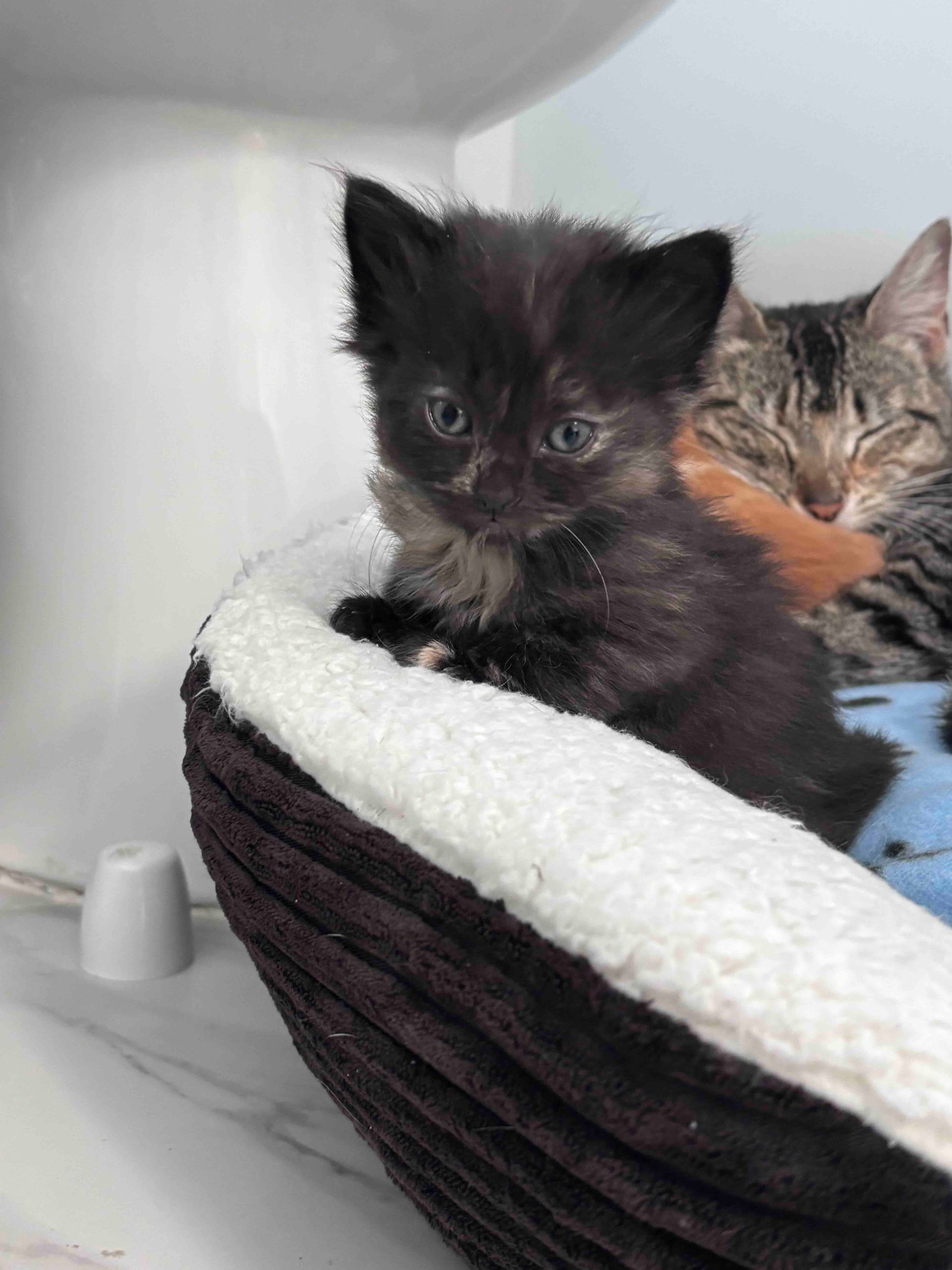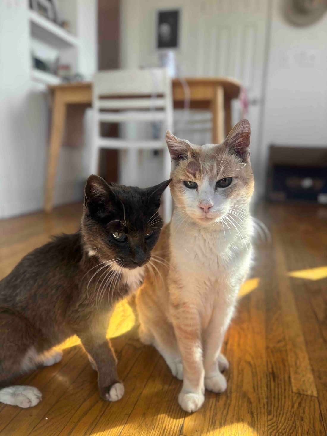 Little Girl & Sunny are a bonded cat duo who came to us with their dog sisters, Croquette & Angela. They laid with their human mom for days after she had passed away due to old age. Sadly, this isn’t the first time they have gone through that. Their first human also died of old age and now their second one did. Yet, every time they go to a new home they are curious, loving and social. They are litter trained, cuddly and just want a home or fostpice home where they can retire. They both have low grade heart murmurs and kidney disease, which means they are on meds and prescription food. Please consider opening up your home to them and if you can’t adopt fully at this time, but are interested in becoming their long-term foster please reach out or fill out our foster application. #maedaylittlegirl