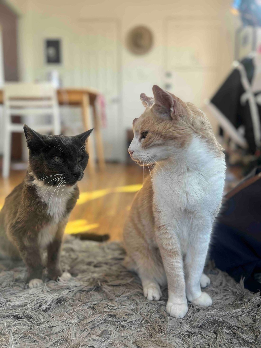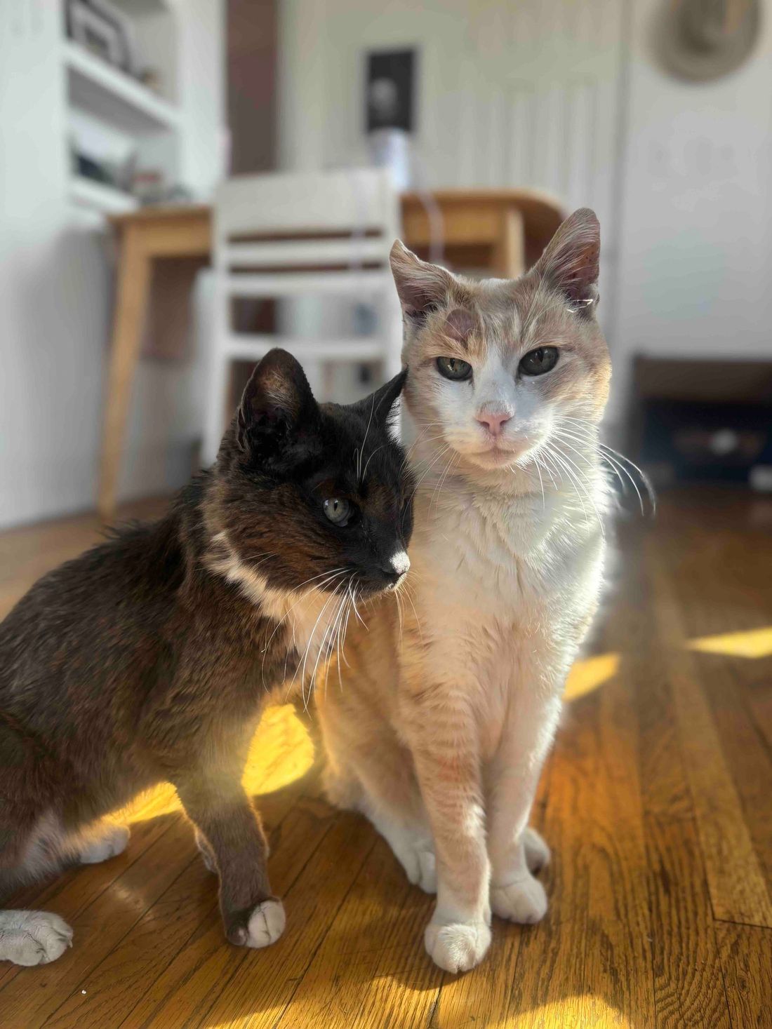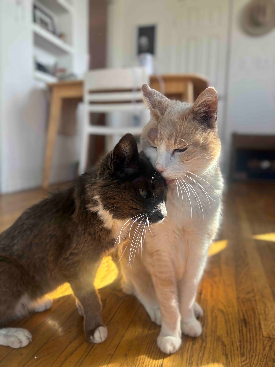 Little Girl & Sunny are a bonded cat duo who came to us with their dog sisters, Croquette & Angela. They laid with their human mom for days after she had passed away due to old age. Sadly, this isn’t the first time they have gone through that. Their first human also died of old age and now their second one did. Yet, every time they go to a new home they are curious, loving and social. They are litter trained, cuddly and just want a home or fostpice home where they can retire. They both have low grade heart murmurs and kidney disease, which means they are on meds and prescription food. Please consider opening up your home to them and if you can’t adopt fully at this time, but are interested in becoming their long-term foster please reach out or fill out our foster application. #maedaylittlegirl