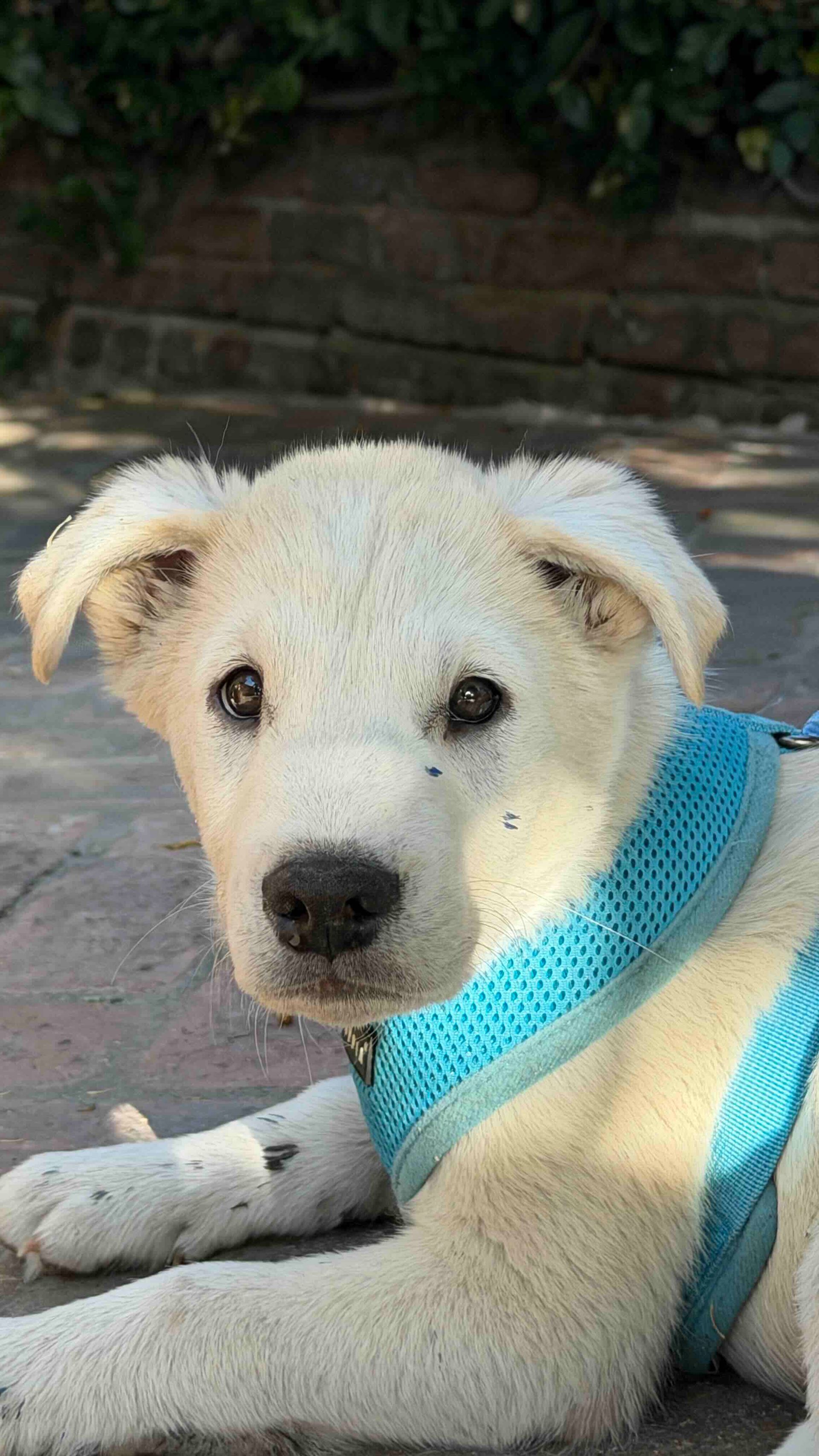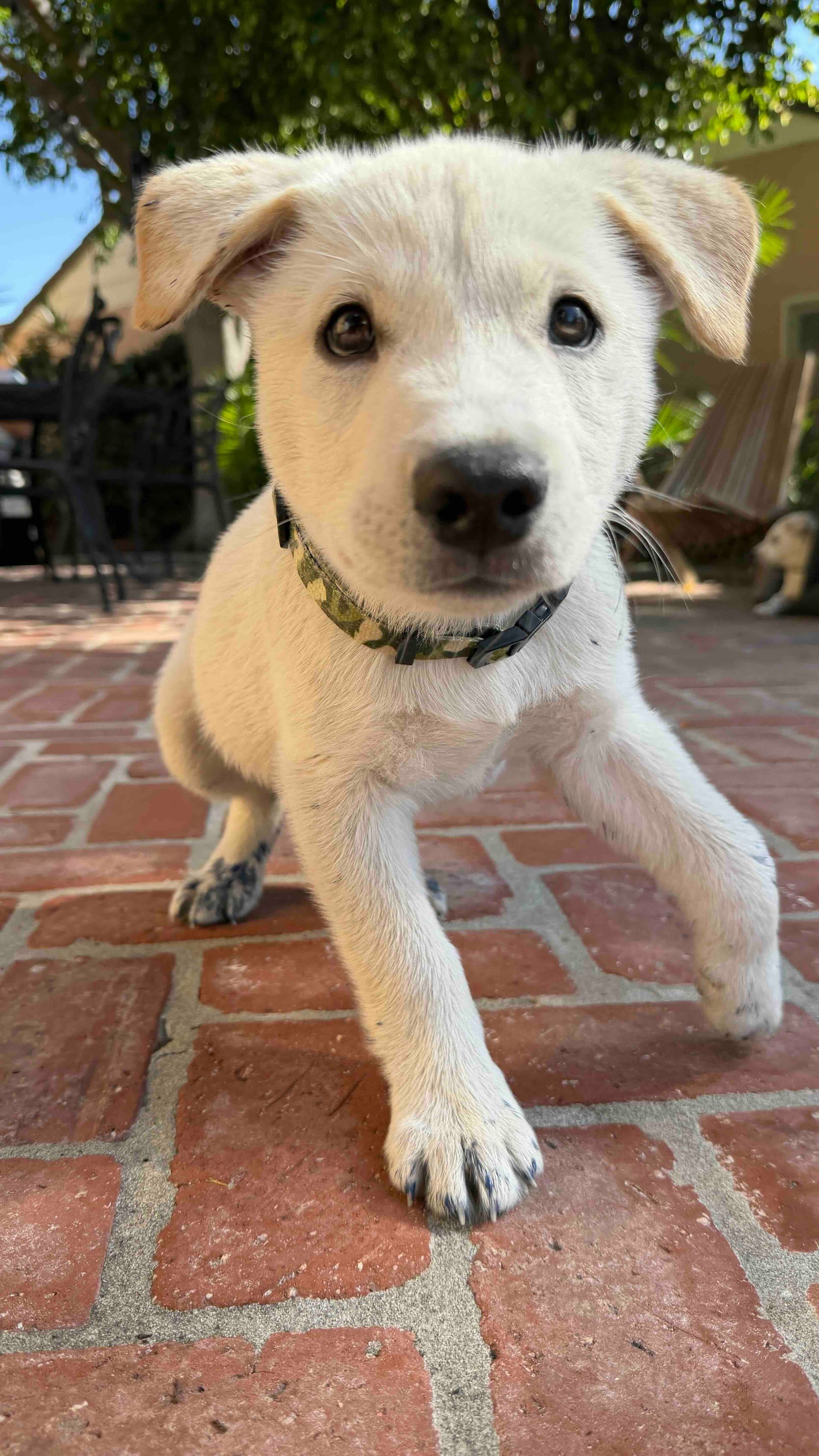 He is about 2 months old and is a typical puppy. His mom is a Shepard/lab mix and he was found in DTLA with his dog family covered in blue paint (which is still on him and won’t come off) He is healthy, has his first round of vaccines and will most likely be about 40-60lbs full grown. Follow his hashtag to fall in love #maedaysherwin
