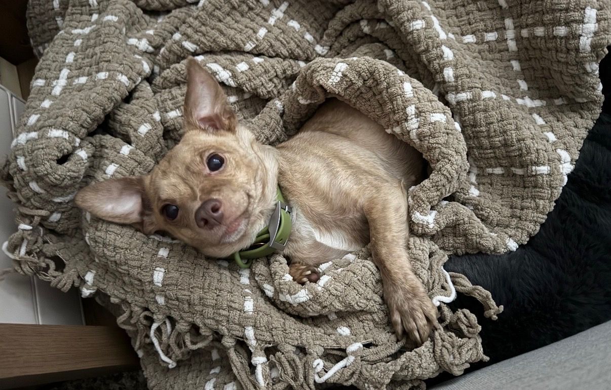 Dumpling! This delicious girl is named Dumpling and she’s a 4 year old dreamboat. She loves everyone, great with dogs, great on walks and is the perfect houseguest for her foster parents. She is pee pad trained and is low to the ground weighing about 12lbs. Check out her hashtag #maedaydumpling