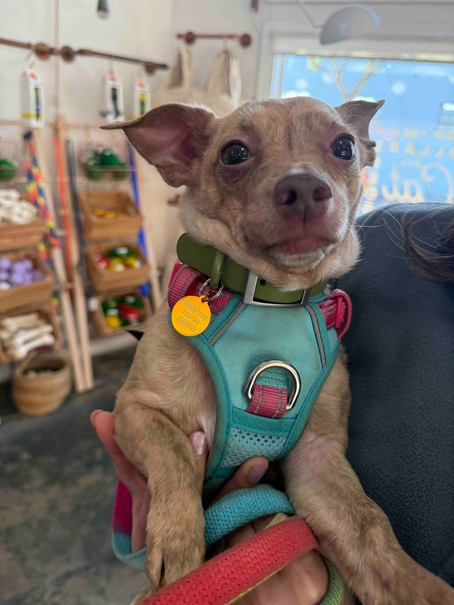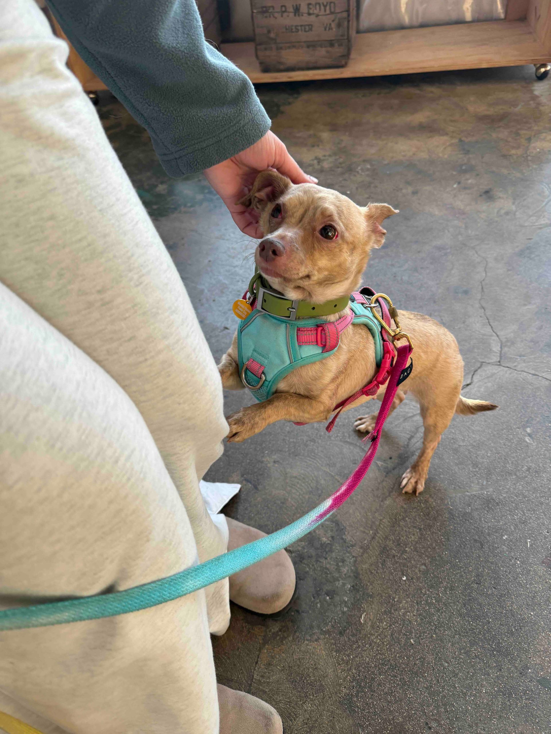 This 9lb girl is anywhere from 3-6ish and is potty trained, gentle on leash, great with all dogs and is a sweet soul. She found herself at the south LA shelter and is happy to be in a foster home. Check out her hashtag on Instagram to follow her journey #maedaydollop