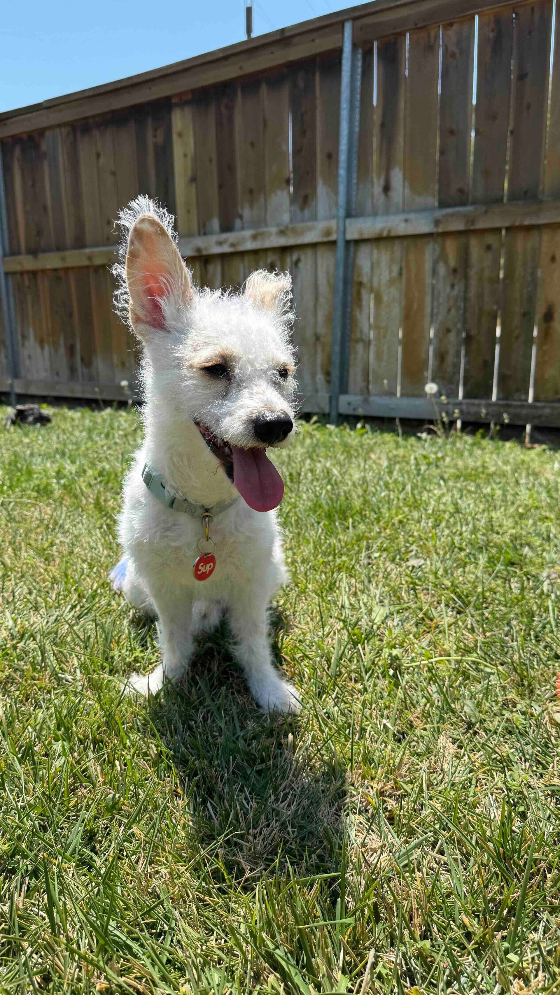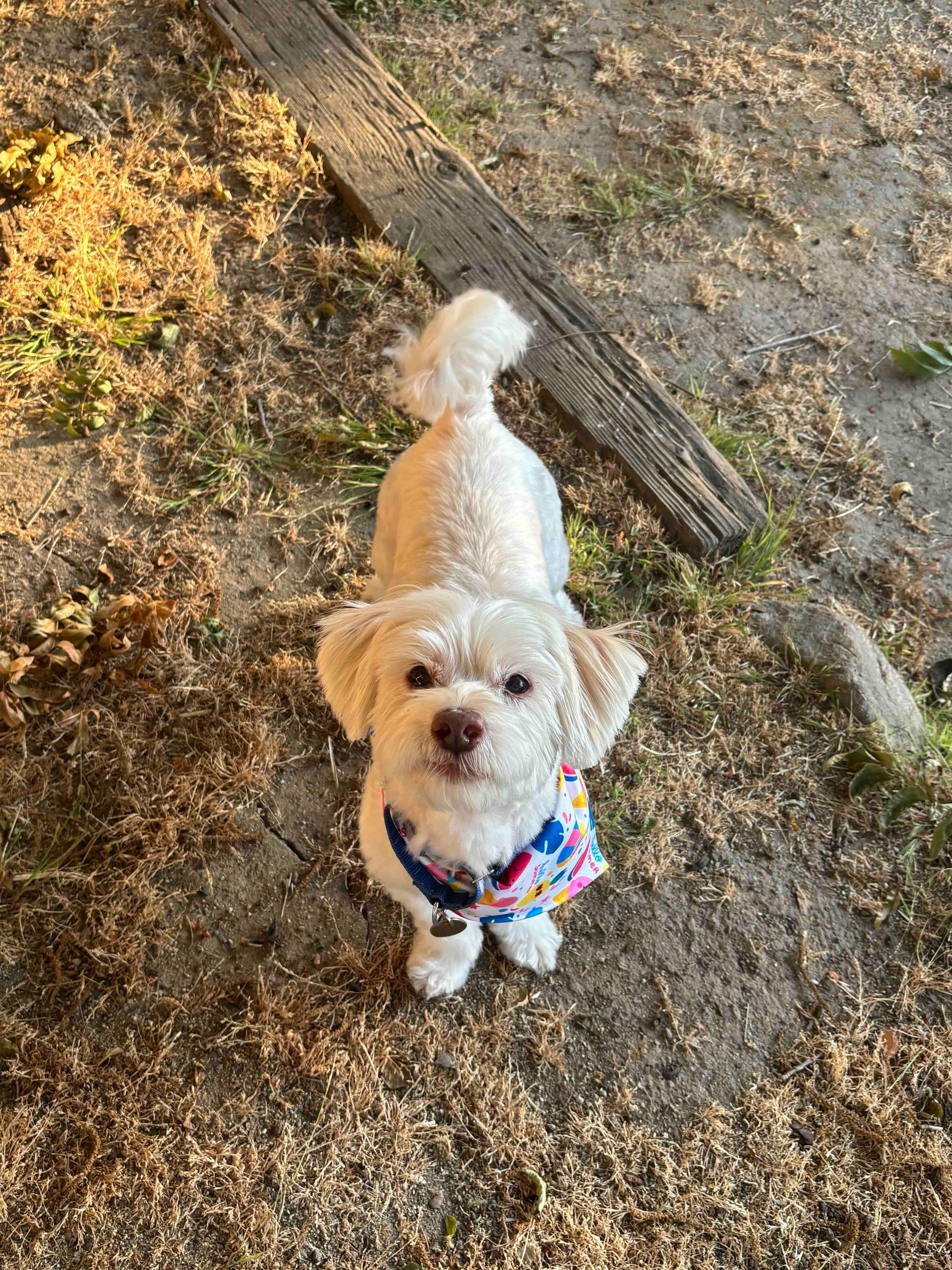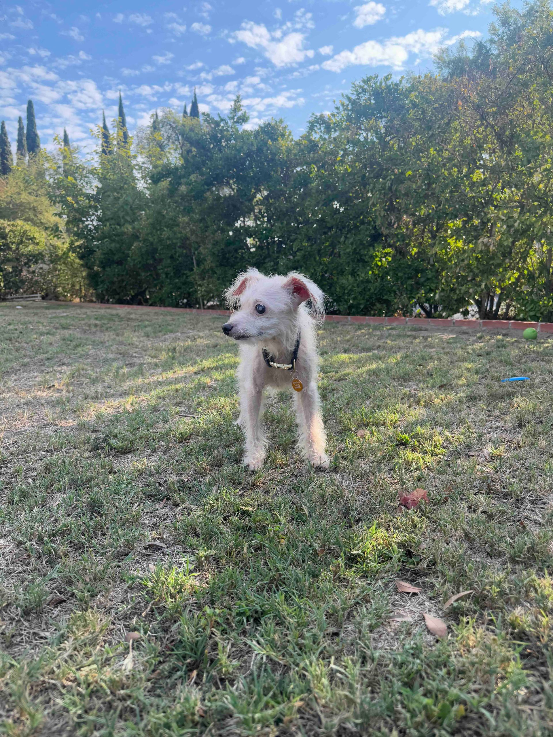 He was originally found in Mexico, living amongst trash. Thankfully, a local rescuer took him in near her home in San Diego, and he finally made his way up to us. He is great with kids, potty trained, trusting, good on leash, likes other animals and did we say perfect?!