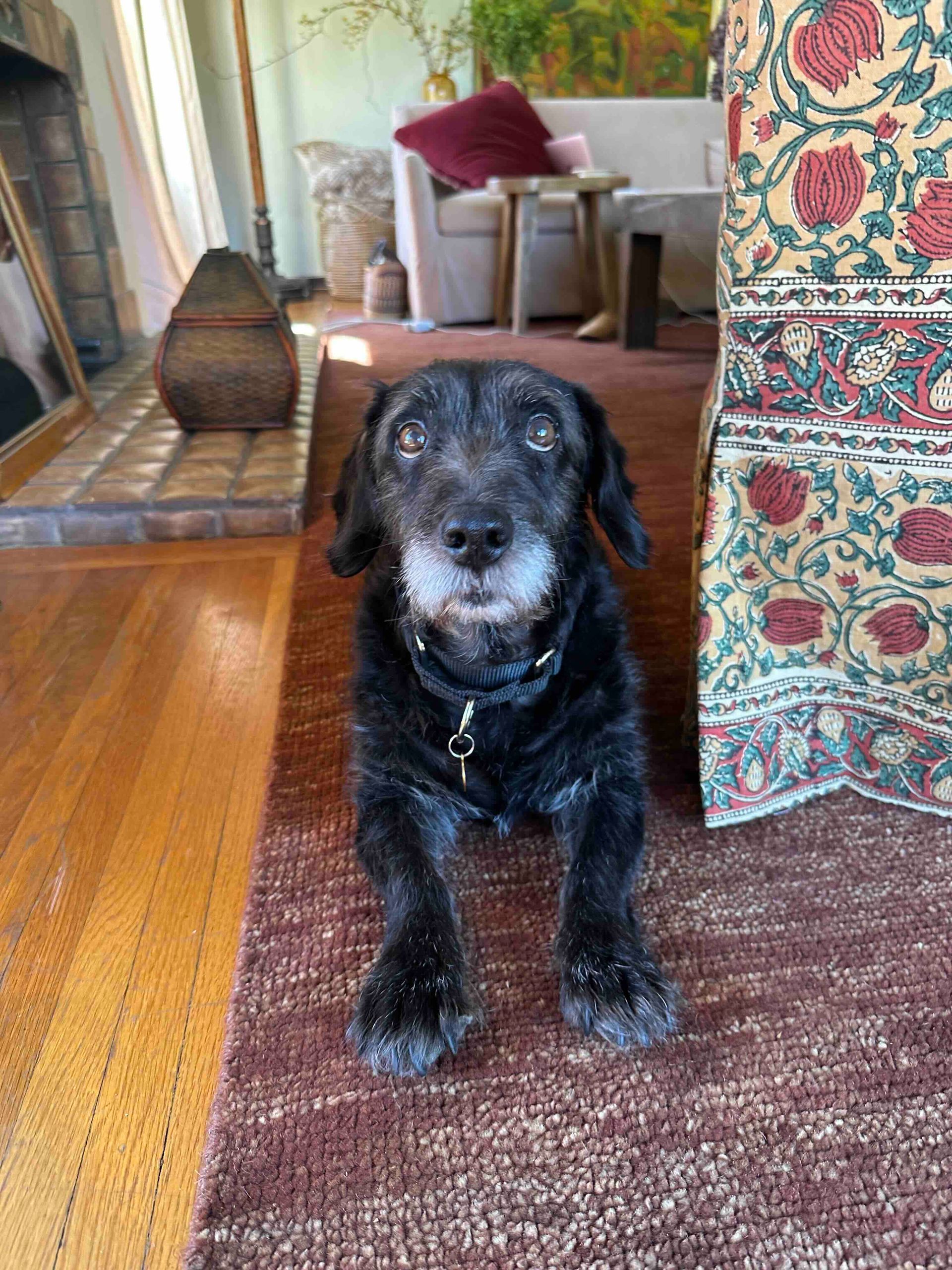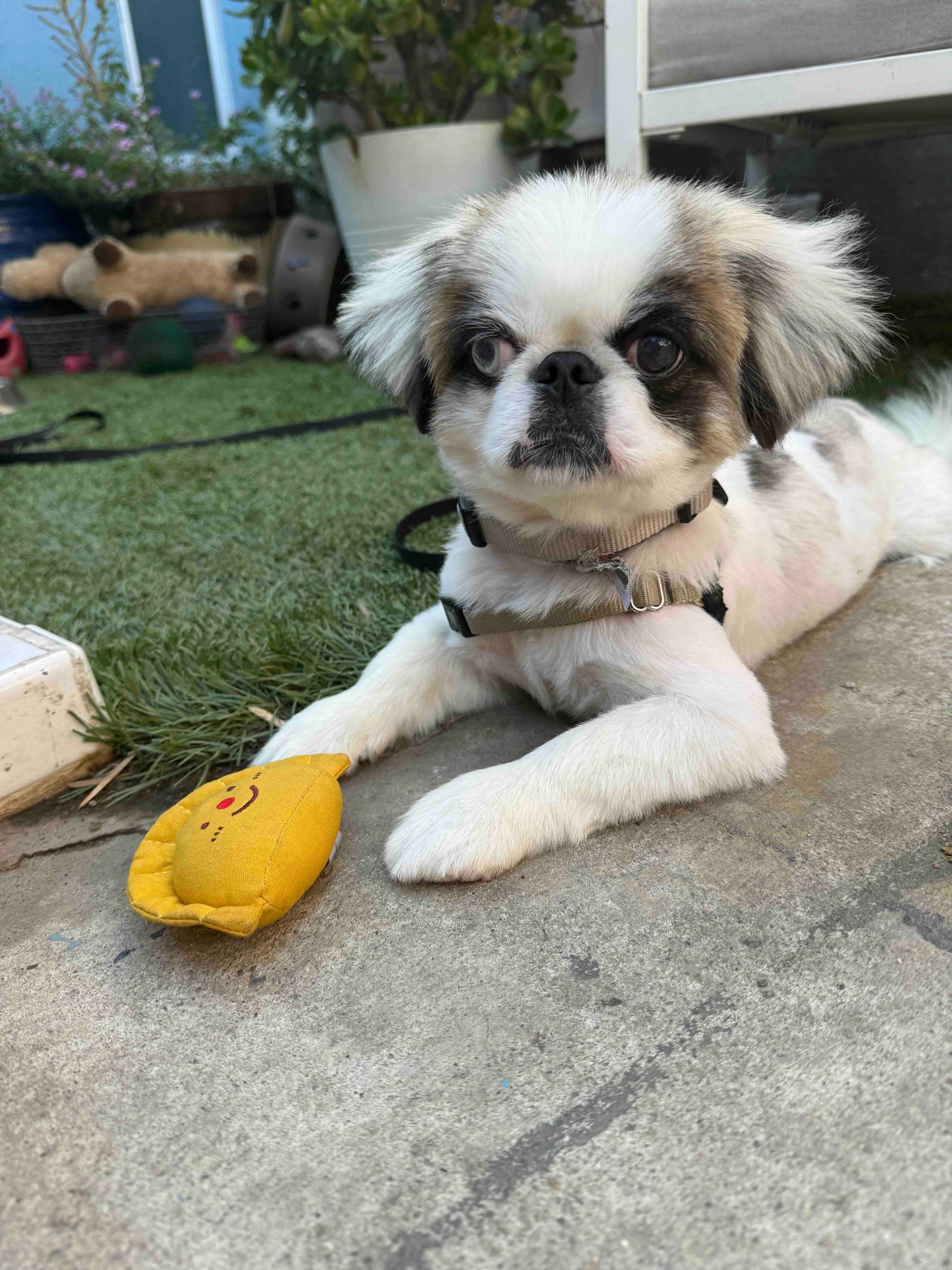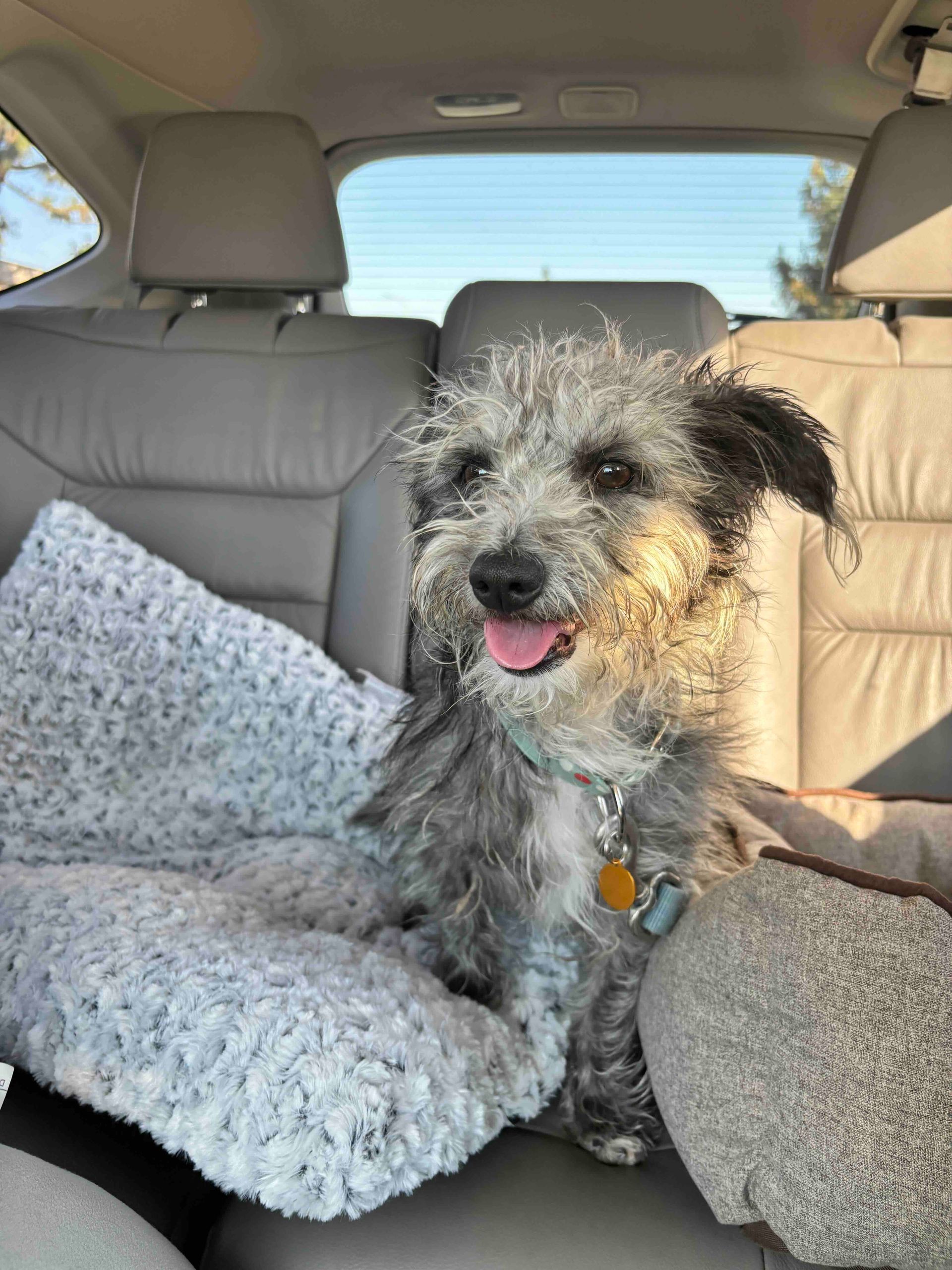 He was originally found in Mexico, living amongst trash. Thankfully, a local rescuer took him in near her home in San Diego, and he finally made his way up to us. He is great with kids, potty trained, trusting, good on leash, likes other animals and did we say perfect?!