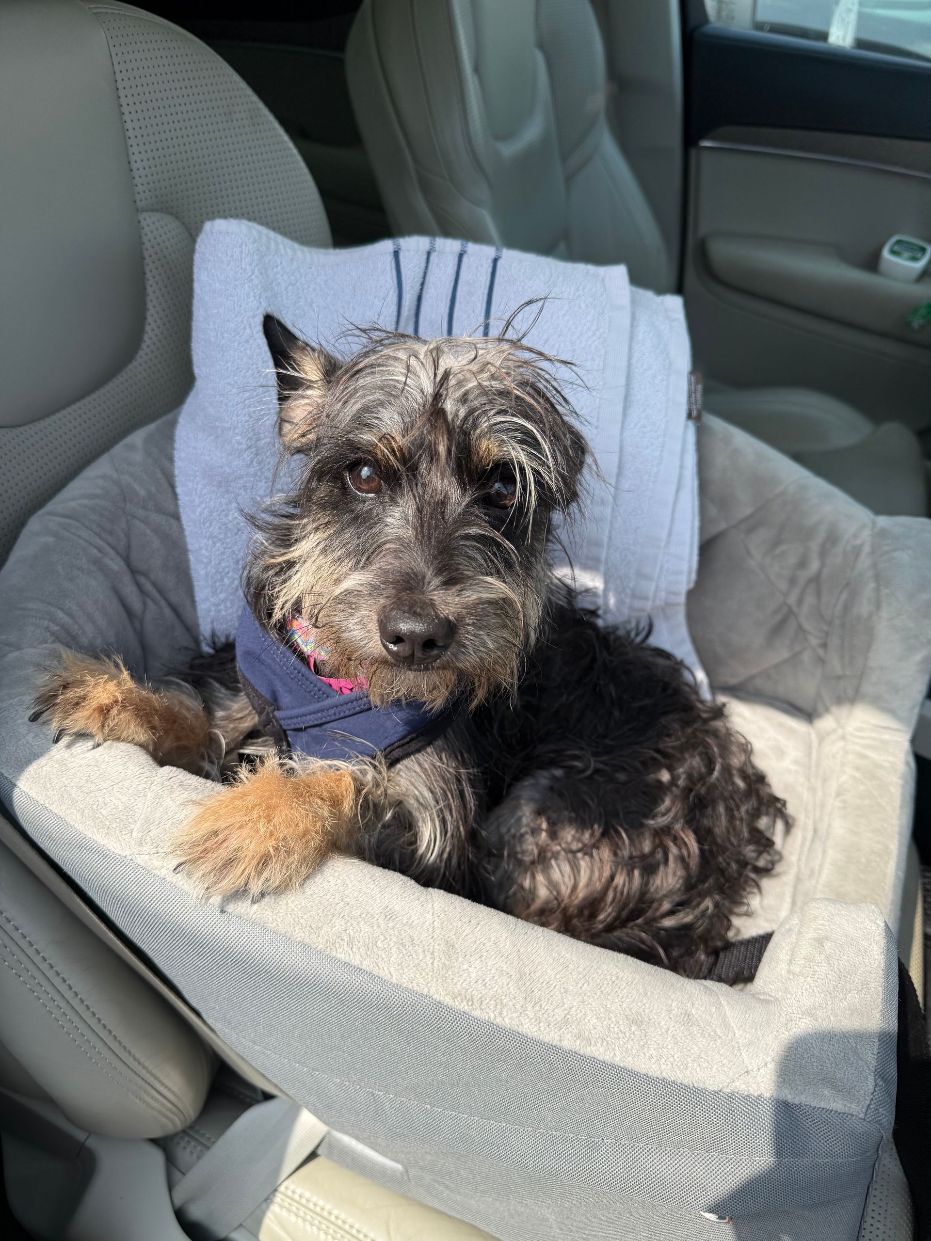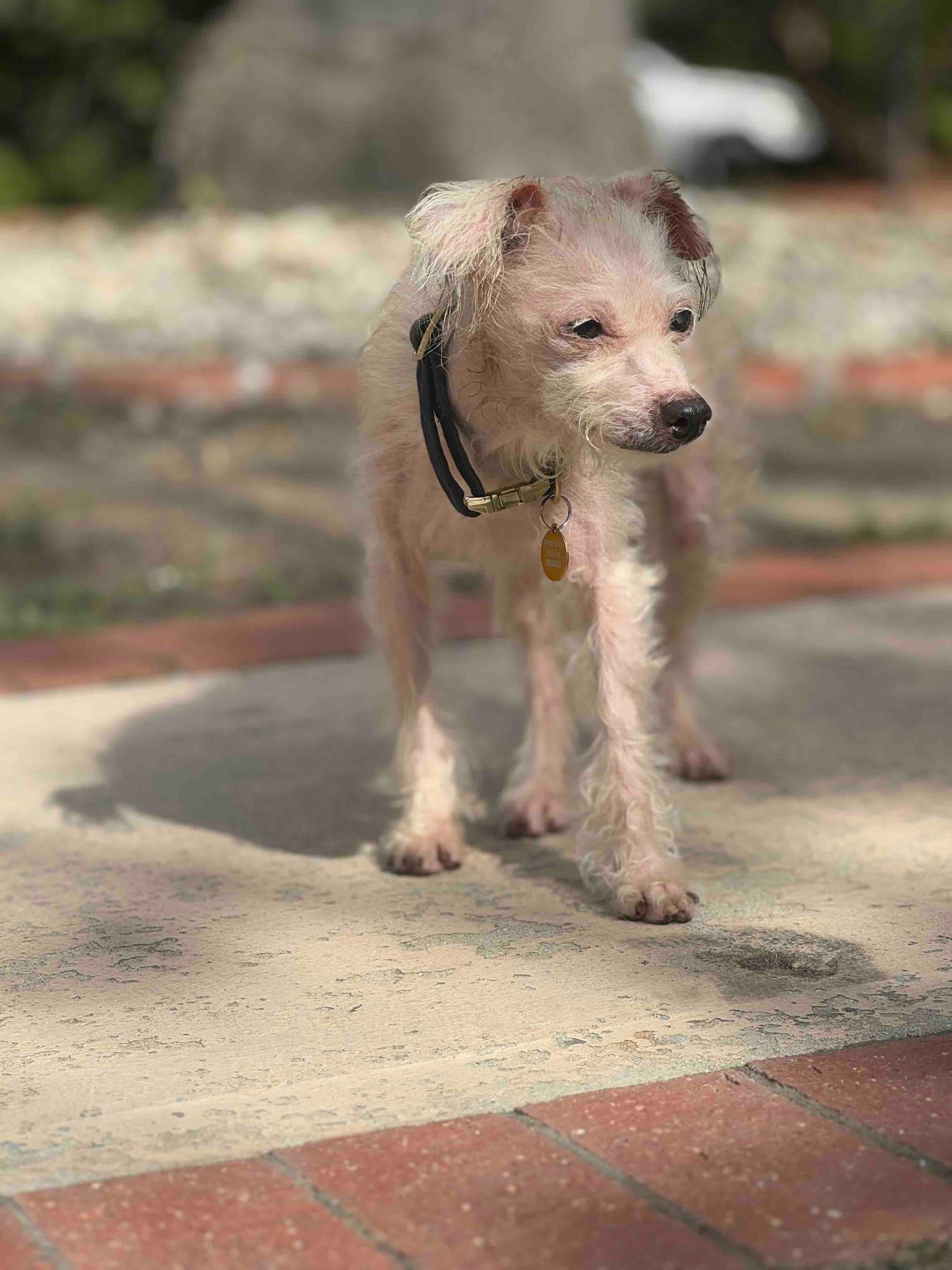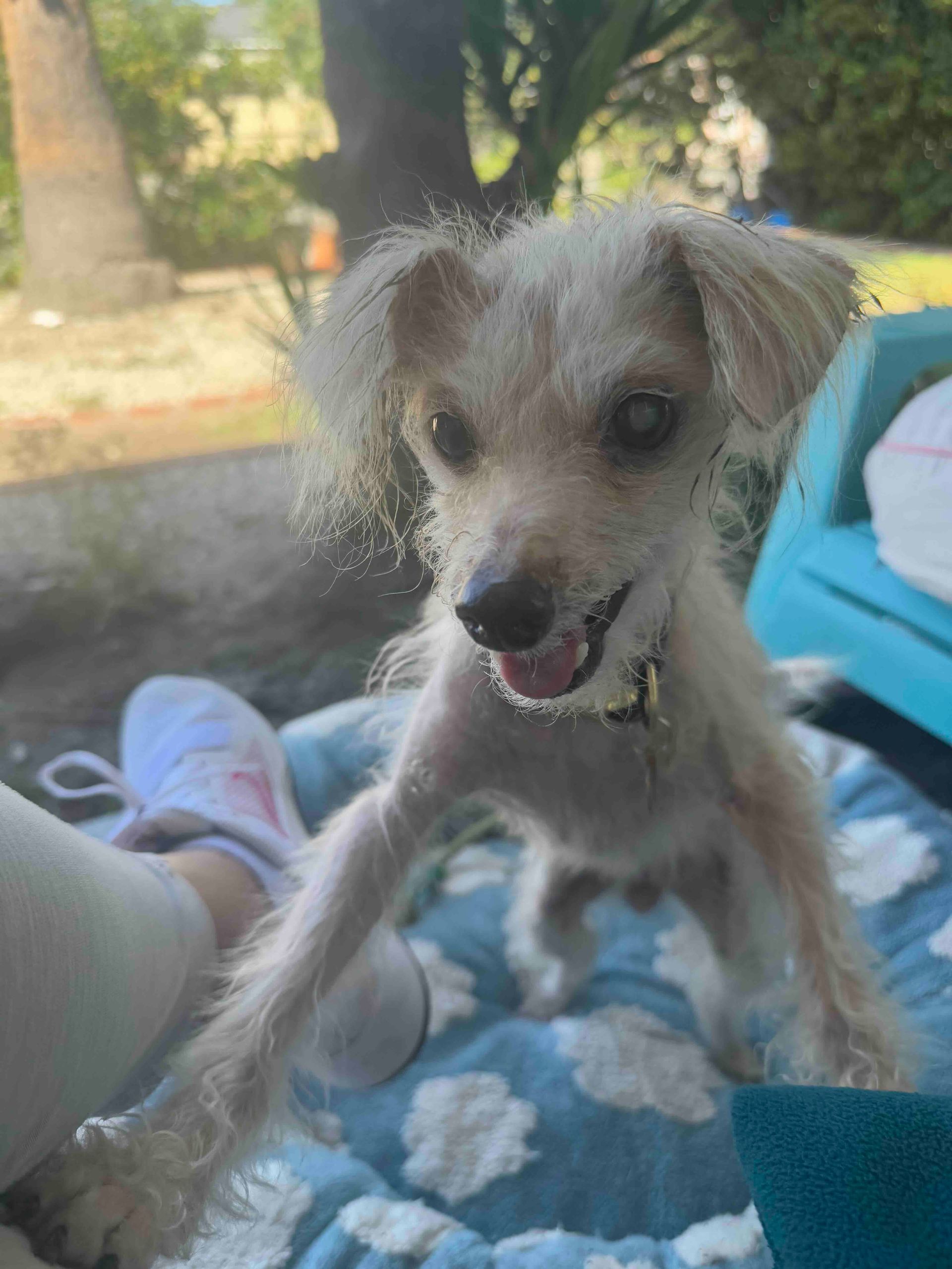 Essie is about 8-10 years old, a small 7 lbs, seems potty trained, loves other dogs and is very cuddly. She has one cataract in her left eye & her skin is healing — we cannot wait to see where this sweet girl ends up. We are so happy that we can be part of her journey. #maedayessie
