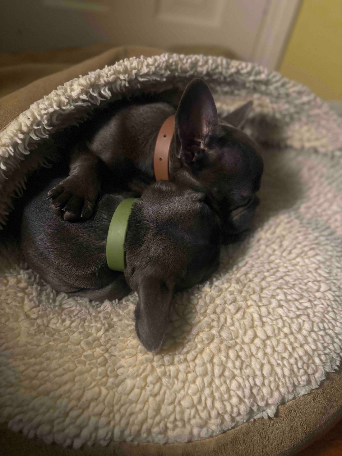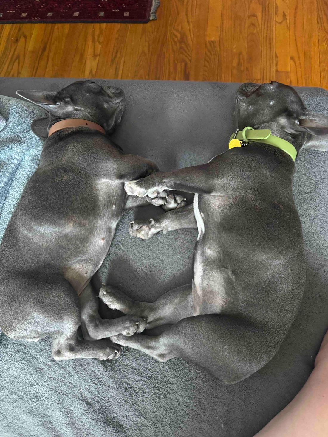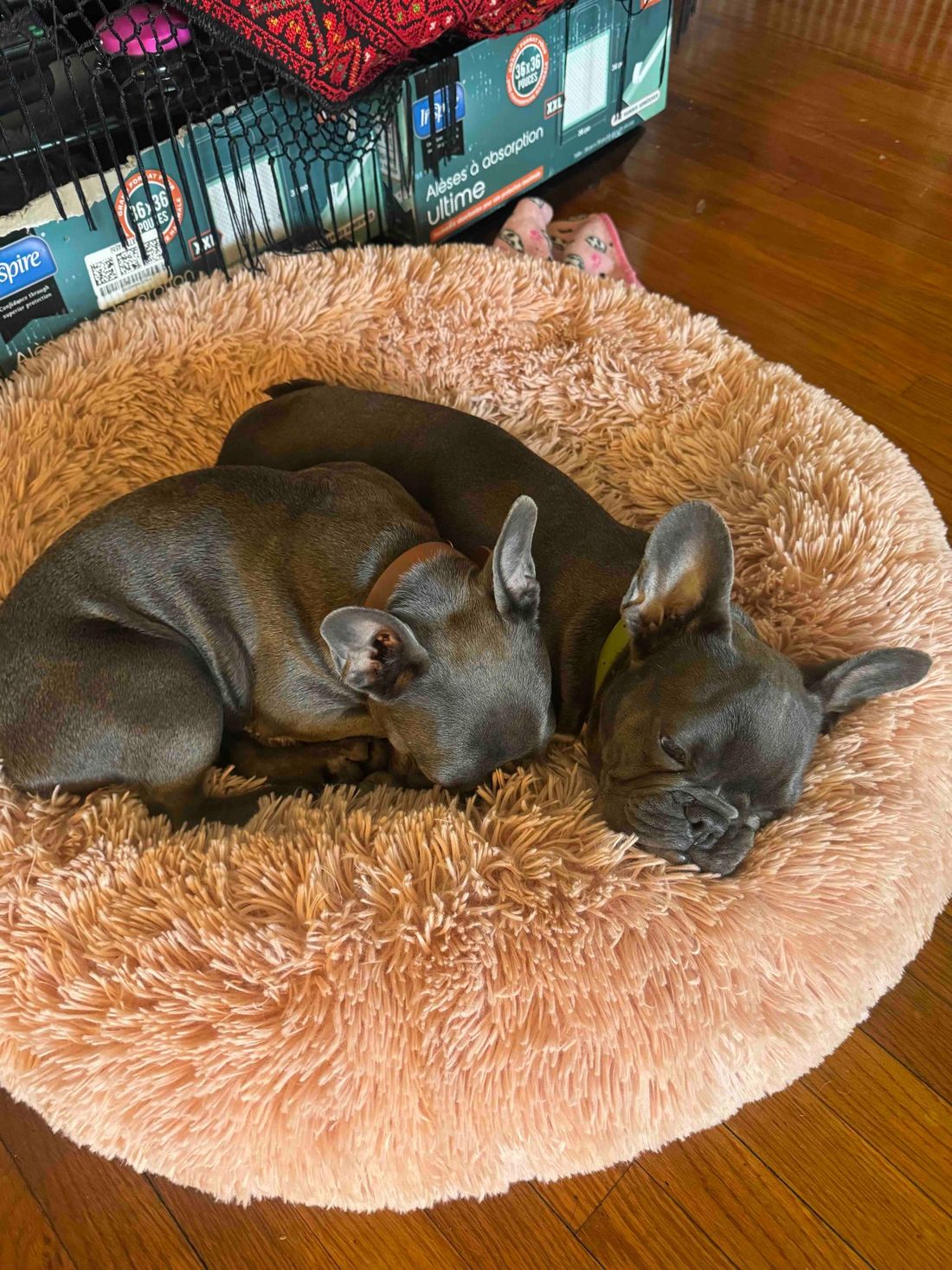 Juliette & Etienne are two bonded frenchie girls. We went back and forth about adopting them into separate homes, but their bond is too strong to disrupt. They are both healthy, have longer bodies than typical frenchies and are spayed. They are great with other dogs, walk well on leash and still have puppy energy at 8 months old. They are potty trained with a schedule and Juliette lives for belly rubs, while Etienne is a bit more shy. #maedayetienne #maedayjuliette