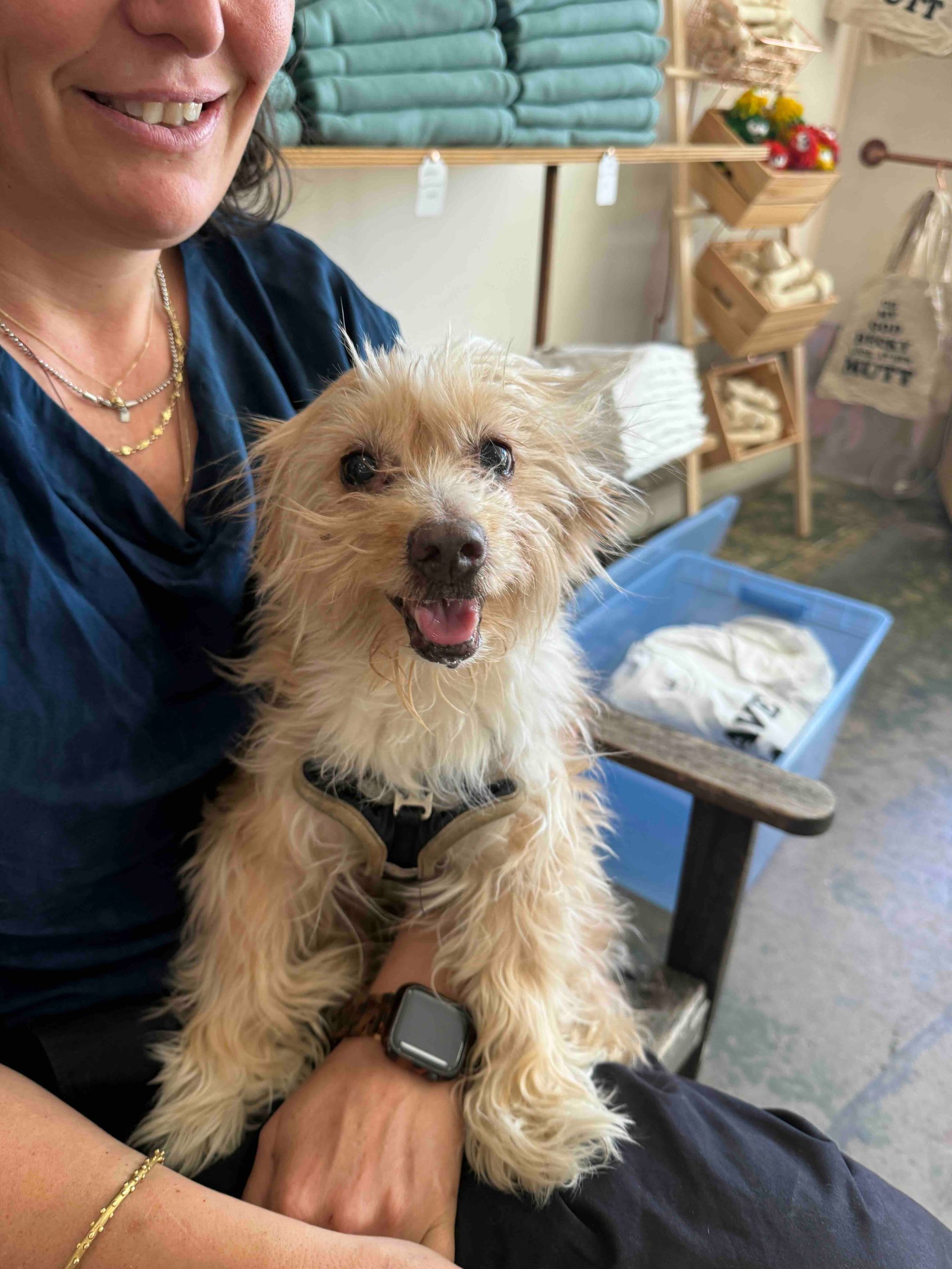 His name is Tobie and he is relaxed, easy on leash, was great for his bath and is great with other dogs. He has a chronic dry eye which will require eye drops, but this little senior is move in ready! #maedaytobie