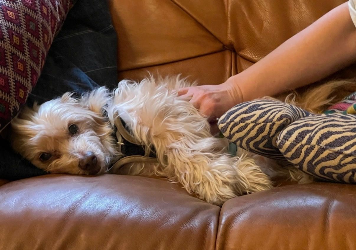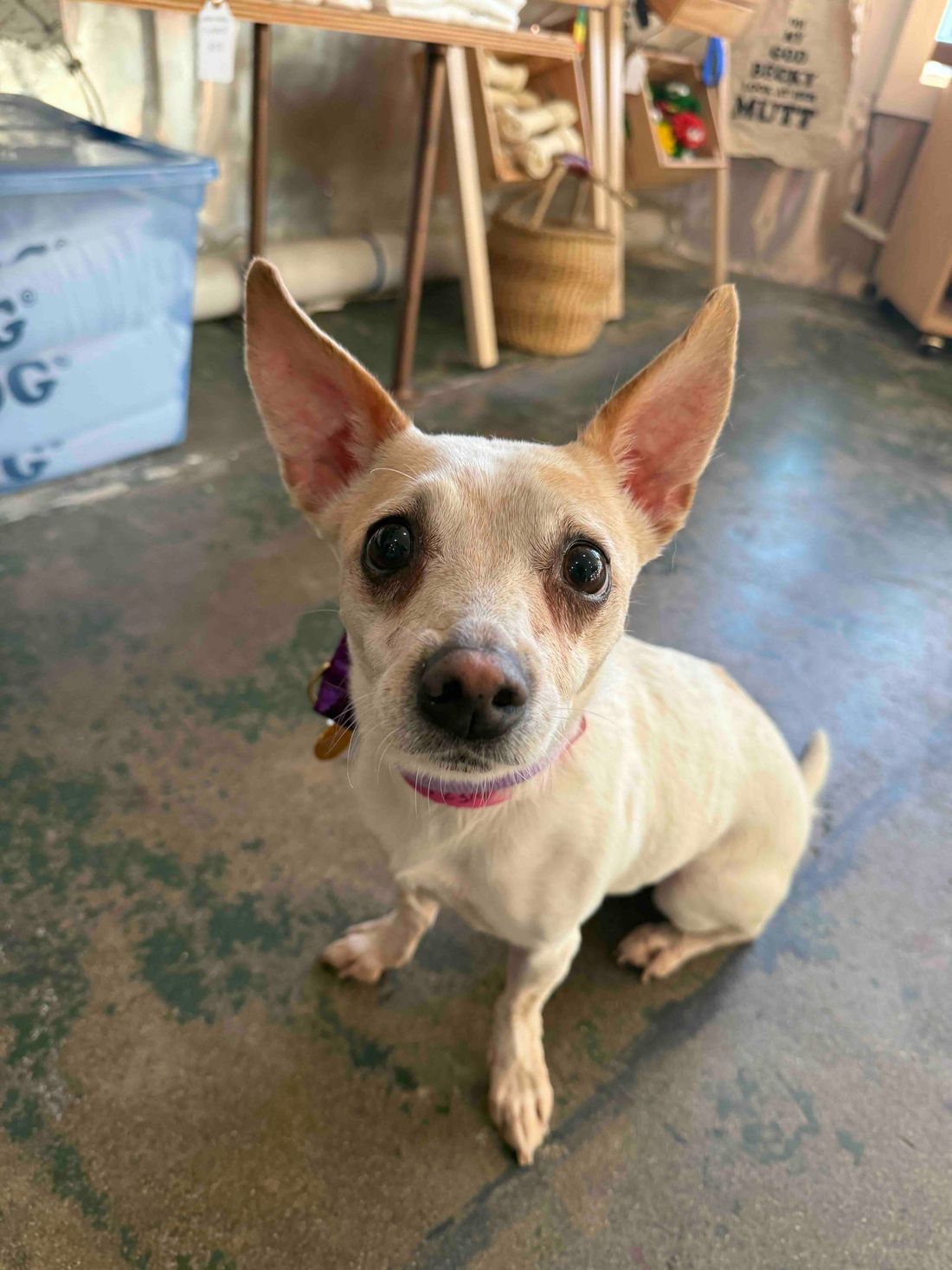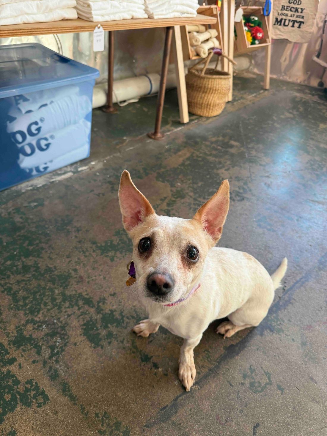 Meet Sprite! This 7 year old girl has had a rough life. We first saw her at the shelter hiding in her cage with fear. She was so excited to exit the shelter and we soon learned she is a shy girl in general, who really distrusts men. She loves women, but will need a gentle and passionate man in her life to overcome her fear. She is potty trained and will tell you when she needs to go out. Is cuddly (with women) and gets along with other chill dogs. Follow her journey through her hashtag #maedaysprite
