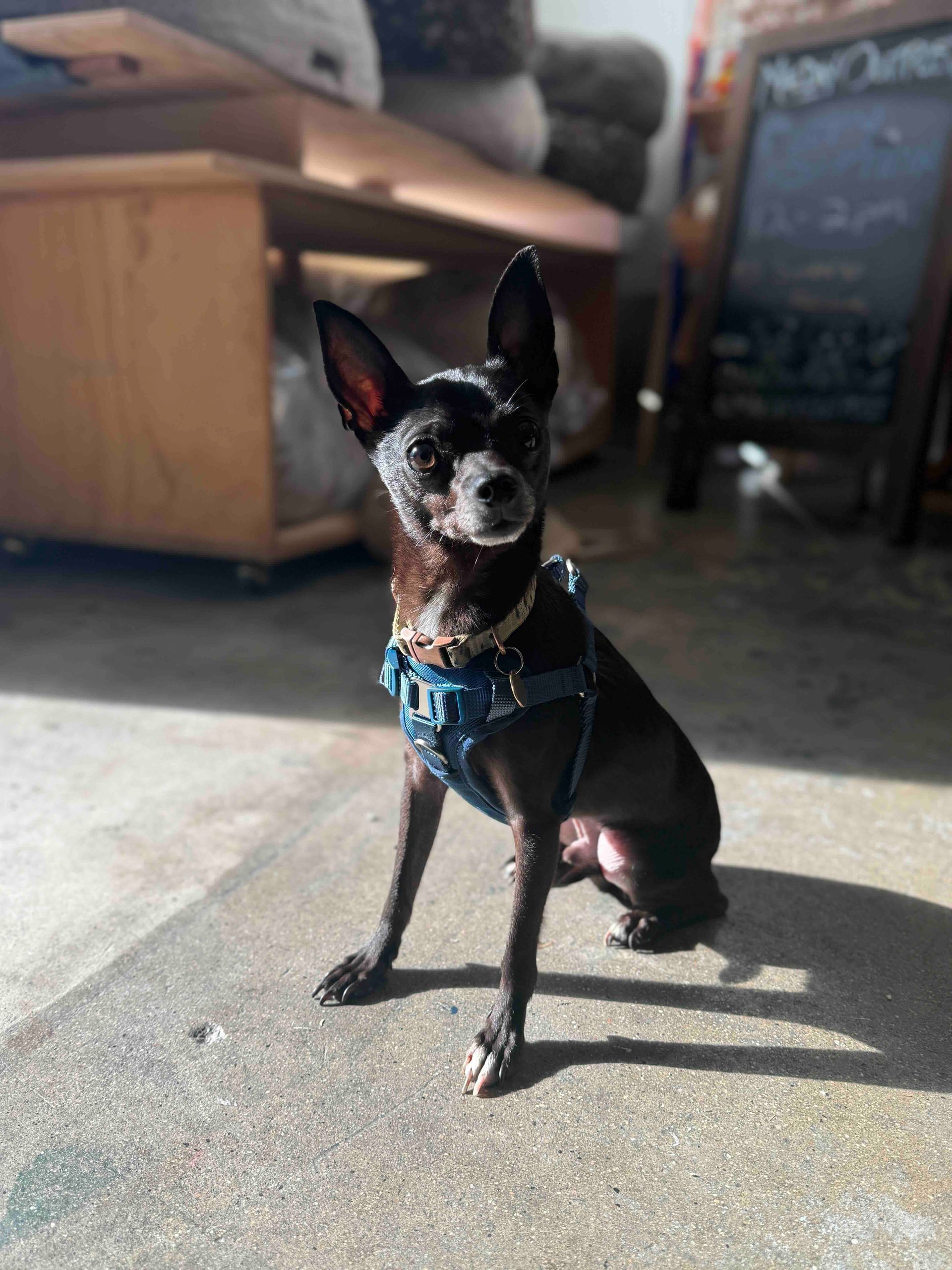 Meet Squid!! This small chihuahua came from a hoarding situation and found his was to Maeday rescue. He is about 8lbs, 5 years old, already neutered & great with other dogs. He is a little shy at first with new people, but a very gentle soul.