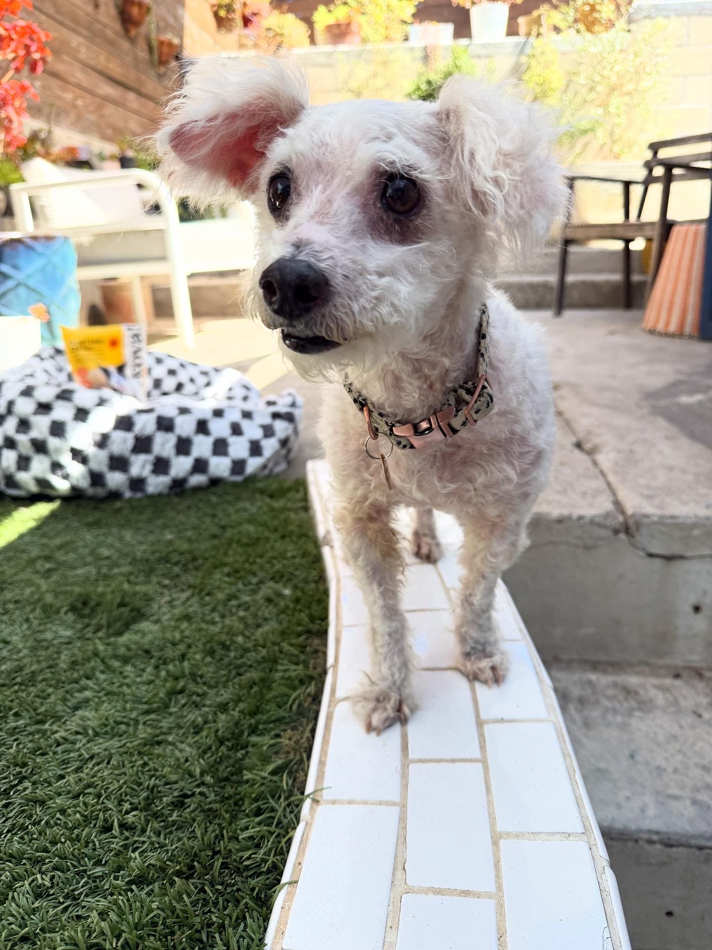 She is a petite poodle mix who is about 8 lbs & around 5 years old. She is hypoallergenic, very sweet and pushes her head into your hand for pets. She seems potty trained and is a great houseguest for her foster! #maedaysusie