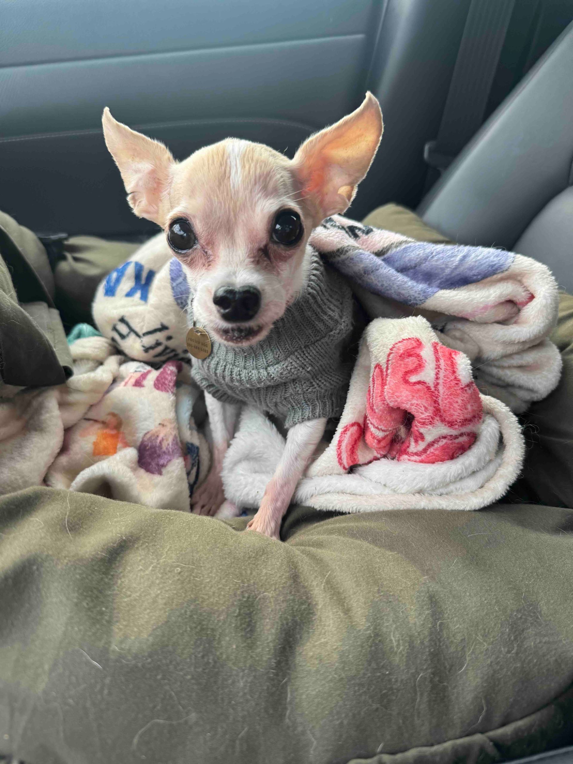Introducing Cornelia! A 4.5 lb tiny chihuahua who is 11 years old found herself at the shelter after her mom couldn’t afford her upkeep. She had terrible dental disease and bad locating patellas, which she should’ve had fixed years ago. We are getting her a dental and hoping to fix her bad legs. She is loving, runs up to strangers for pets, is potty trained and great with other dogs. Did we mention she is 4.5 lbs?! #maedaycornelia